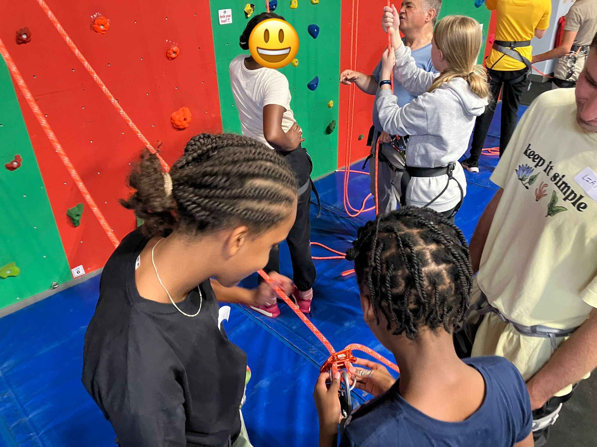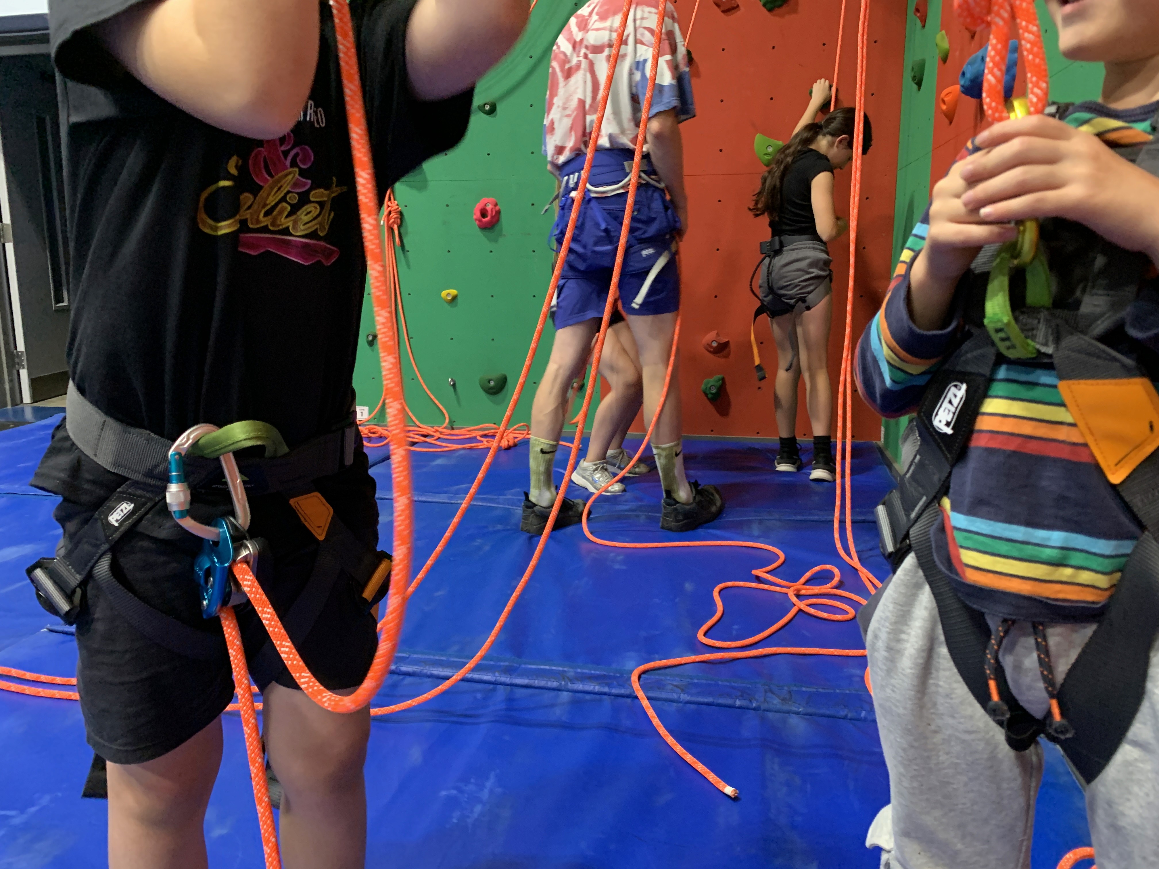 Currently (due to harnesses) the maximum number of climbers is 12. After some fun warm-ups and games roped climbers are managed as pairs or trios.